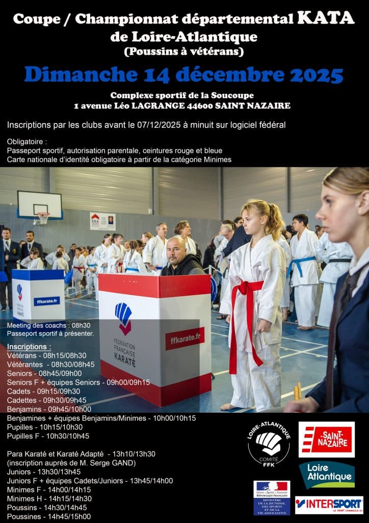 Coupe et championnat départemental – Kata Date Dim. 14 Décembre 2025 de 08h à 17h Lieu Saint Nazaire (44)