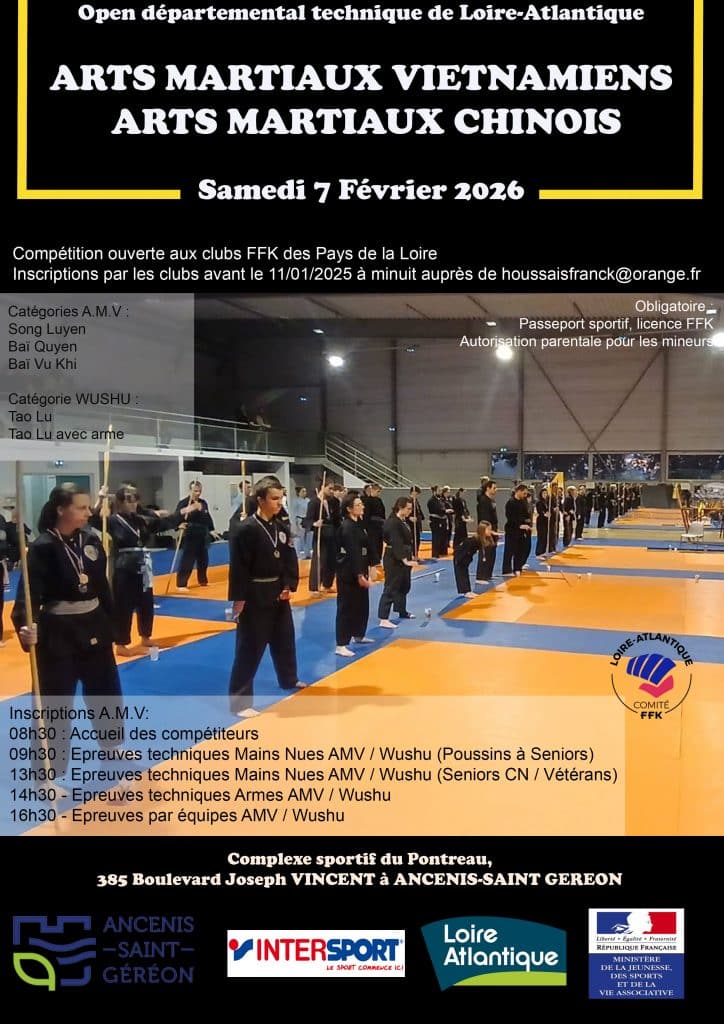 Open départemental Arts Martiaux Vietnamiens Date Sam. 7 Février 2026 de 09h30 à 18h Lieu Ancenis (44)