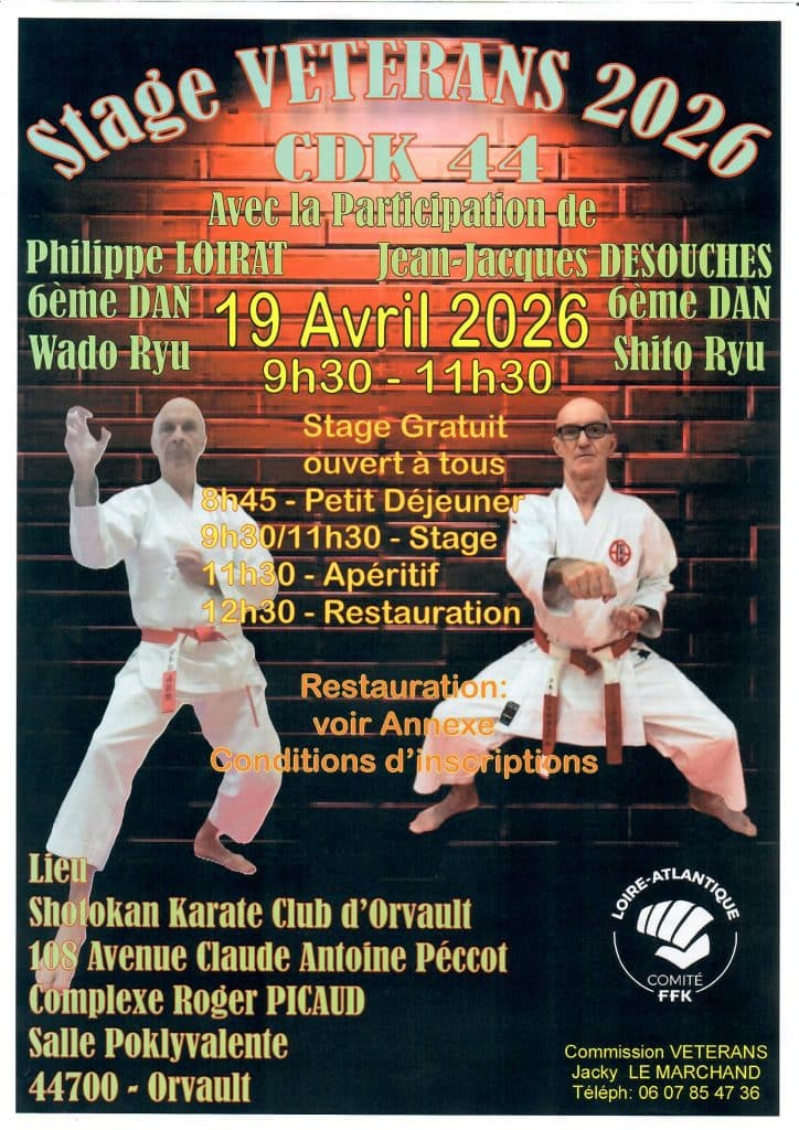 Réserver votre stage « Vétérans », avec une vision complémentaire du karaté par deux hauts gradés, l’un est wado-ryu, l’autre est shito ryu.