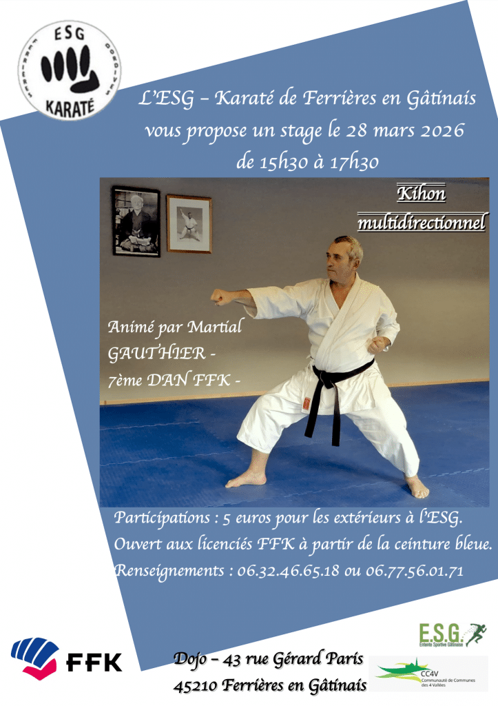 Stage animé par Martial GAUTHIER, 7ème DAN FFK autour du thème du kihon multidirectionnel.
