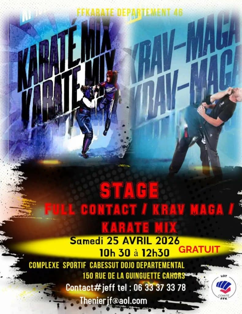 Le SAMEDI 25 AVRIL 2026 de 10 H 30 à 12 H 30, le CDK46 organise un stage, GRATUIT, ouvert aux licenciés FFKDA. Toutes les informations nécessaire figurent sur l'affiche.