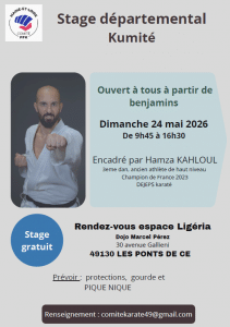Le comité départemental a souhaité relancé l’action des stages de préparation auprès des personnes intéressées par le karaté sportif. ces stages s’adressent aux compétiteurs mais pas seulement. Les professeurs peuvent également y  participer pour se former et s’entrainer. Les stages sont encadrés par Hamza KAHLOUL ancien athlète de haut niveau 3eme dan. Le premier stage du dimanche 22 mai a rassemblé une vingtaine de participants. Merci à tous pour cette mobilisation que nous espérons encore meilleure pour le second stage qui aura lieu le dimanche 24 mai prochain.