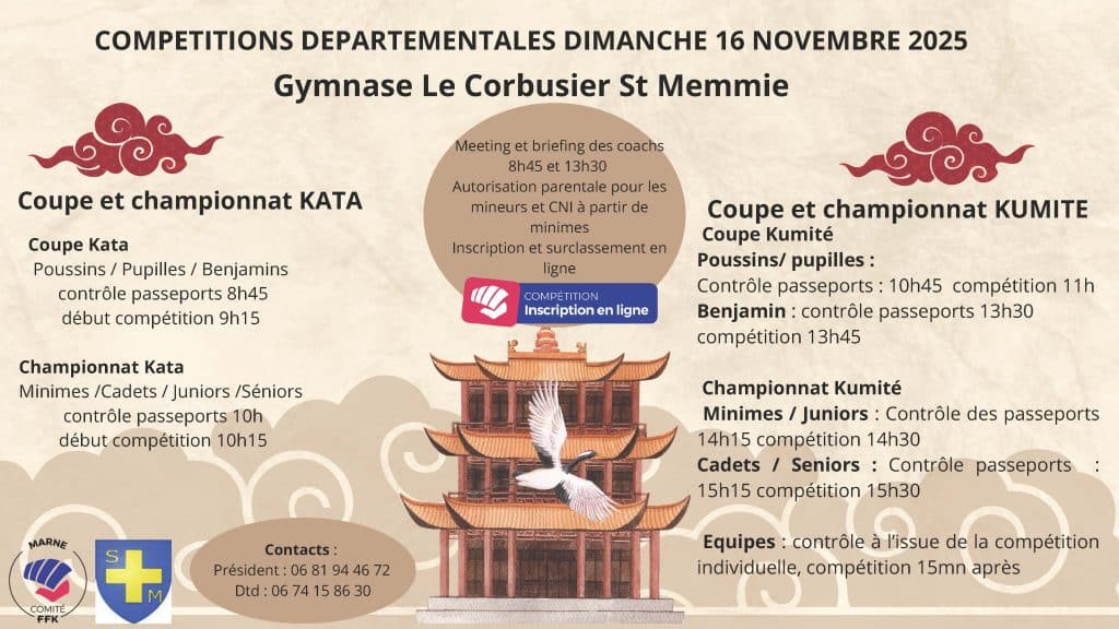 Championnat et Coupe Kumité+Kata Marne 16-11-2025 28 octobre 2025 Championnat et Coupe Kata et Kumité Marne