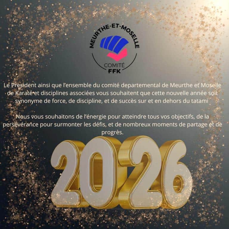 Le président ainsi que l’ensemble du comité départemental de Meuthe et Moselle de Karaté et disciplines associées vous souhaitent que cette nouvelle année soit synonyme de force, de discipline, et de succès sur et en dehors du tatami