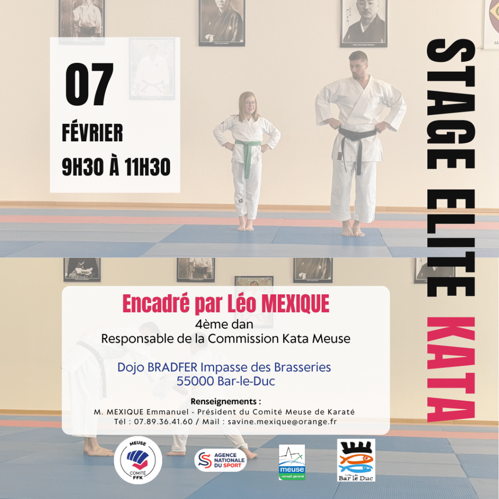 Le Comité Meuse de Karaté organise un stage élite dédié au kata, le 7 février de 9h30 à 11h30, au Dojo Bradfer à Bar-le-Duc.