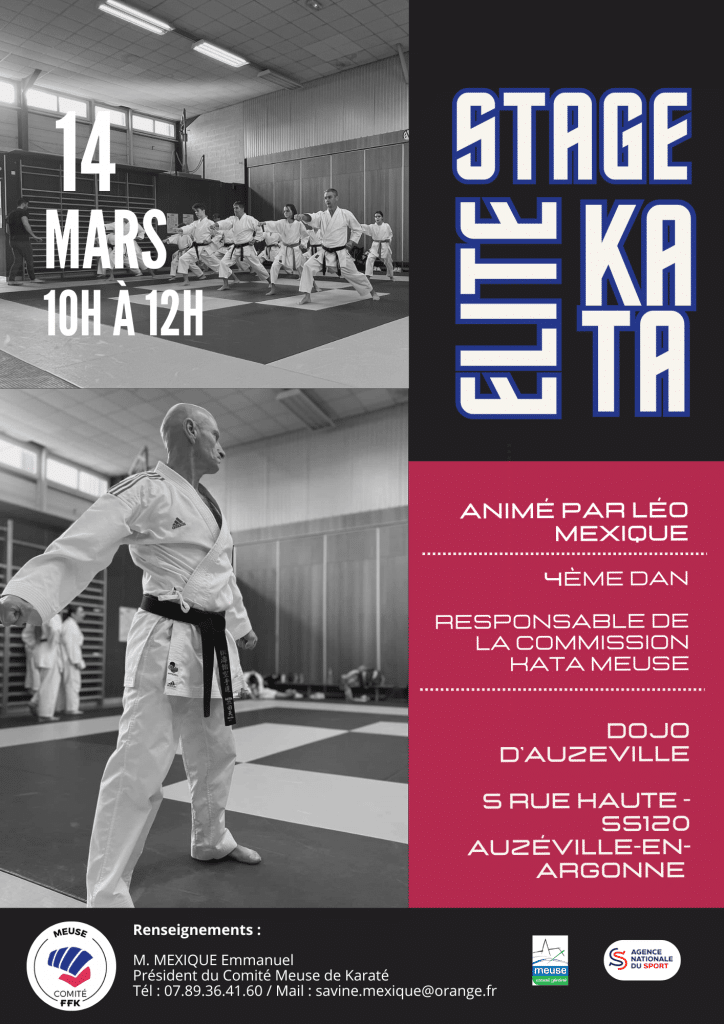 Dans la continuité des actions menées par le Comité Meuse de Karaté, un stage élite consacré au kata est organisé le samedi 14 mars 2026 au dojo d’Auzéville-en-Argonne.