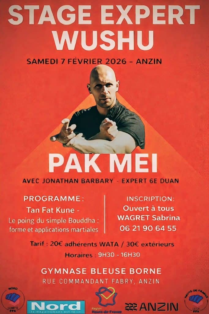 Samedi 7 février 2026 à Anzin, stage avec Jonathan BARBARY expert Wushu 6ème DUAN.