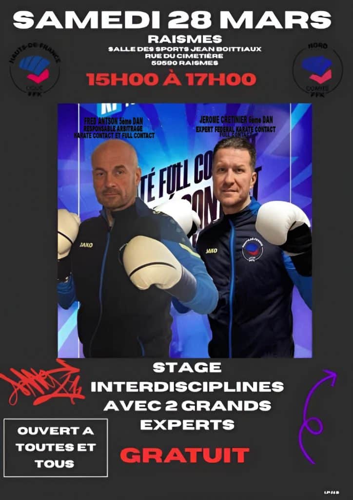 Le samedi 28 mars après-midi se deroulera un stage inter disciplines aouvert à tous les clubs du Nord pour tous les licenciés.