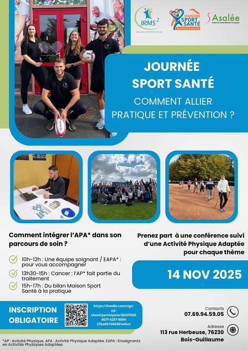 La Maison Sport Santé de l’Institut Régional de Médecine du Sport et de la Santé (IRMS²) a le plaisir de vous convier à sa Journée Sport Santé , qui se tiendra le vendredi 14 novembre 2025 .