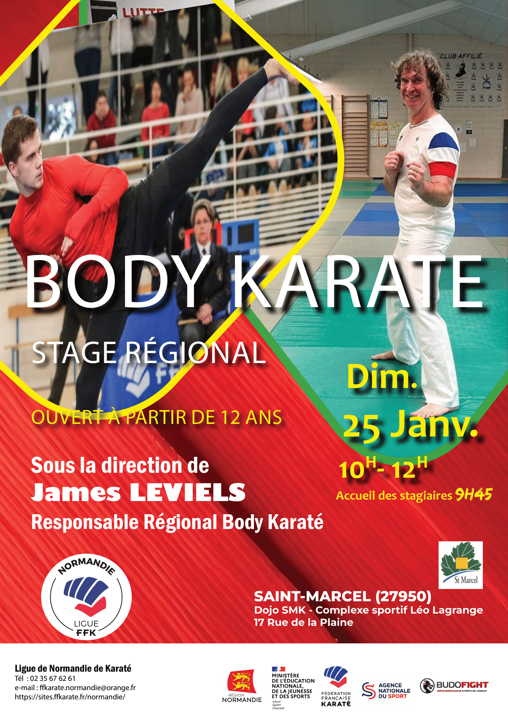 STAGE REGIONAL BODY KARATE Date Dim. 25 Janvier 2026 Lieu DOJO LEO LAGRANGE17 RUE DE LA PLAINE 27950 SAINT-MARCEL