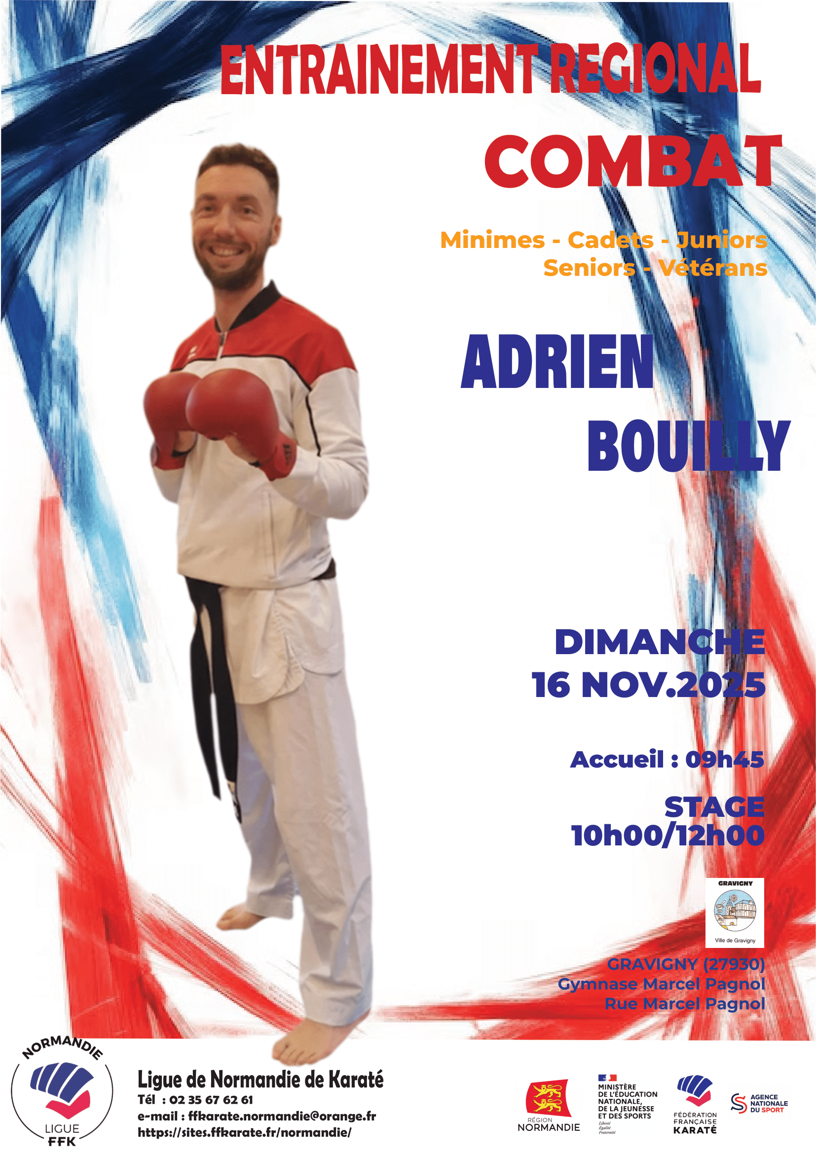 STAGE REGIONAL KARATE – COMBAT Date Dim. 16 Novembre 2025 Lieu Complexe Sportif Marcel PAGNOLRUE MARCEL PAGNOL 27930 GRAVIGNY