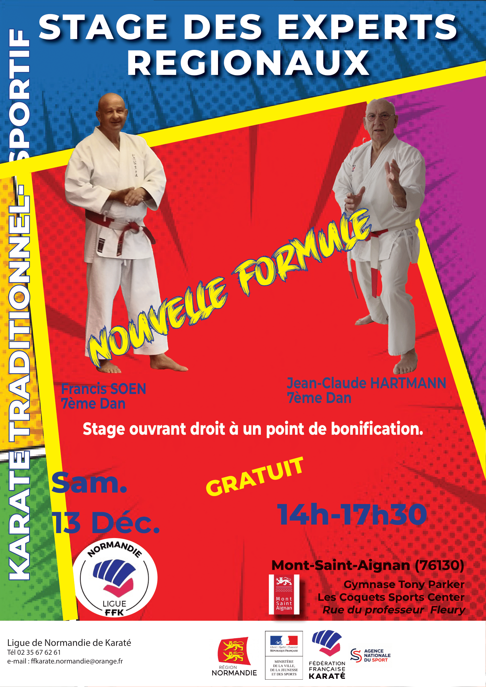 STAGE REGIONAL EXPERTS REGIONAUX Date Sam. 13 Décembre 2025 Lieu Gymnase Tony ParkerRUE DU PROFESSEUR FLEURY 76130 MONT-SAINT-AIGNAN