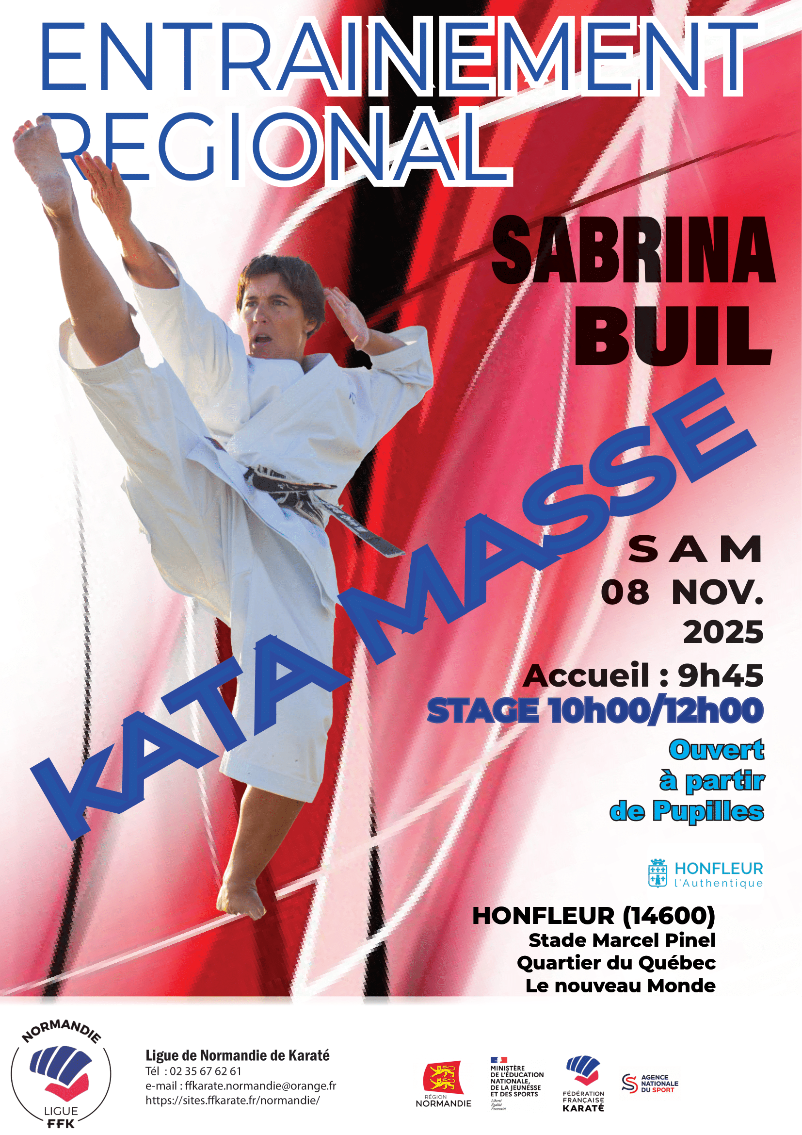 STAGE REGIONAL KARATE – KATA Date Sam. 8 Novembre 2025 Lieu STADE MARCEL PINELQUARTIER DU QUEBEC - NOUVEAU MONDE 14600 HONFLEUR