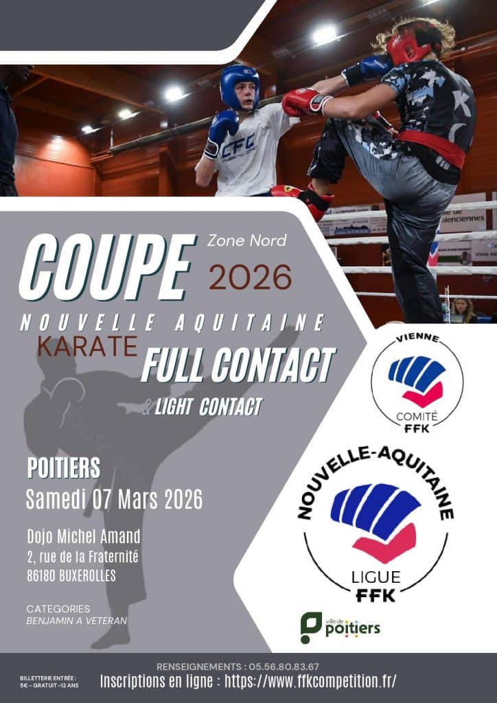 COUPE INTERDEPARTEMENTALE ZONE NORD KARATE LIGHT CONTACT ET KARATE FULL CONTACT Date Sam. 7 Mars 2026 Lieu POITIERS (86)