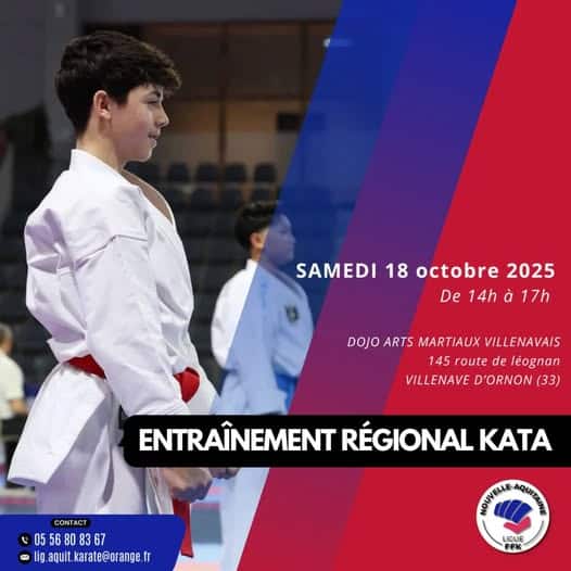 ENTRAINEMENT LRNA KATA Date Sam. 18 Octobre 2025 de 14h à 17h Lieu VILLENAVE D'ORNONDojo Attane 145 route de Léognan