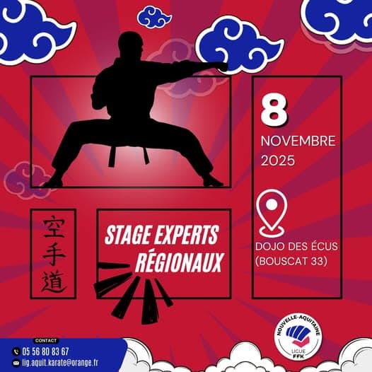 Stage au Dojo des Ecus au BOUSCAT le 08/11/2025 de 09h30 à 12H00 et de 14h30 à 17h00.