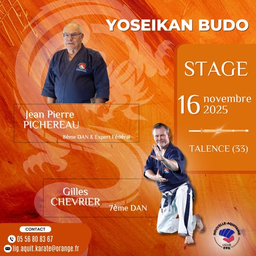 STAGE YOSEIKAN Date Dim. 16 Novembre 2025 de 09h30 à 16h30 Lieu TALENCE (33)Salle GAMMA 63 Ave de la Marne