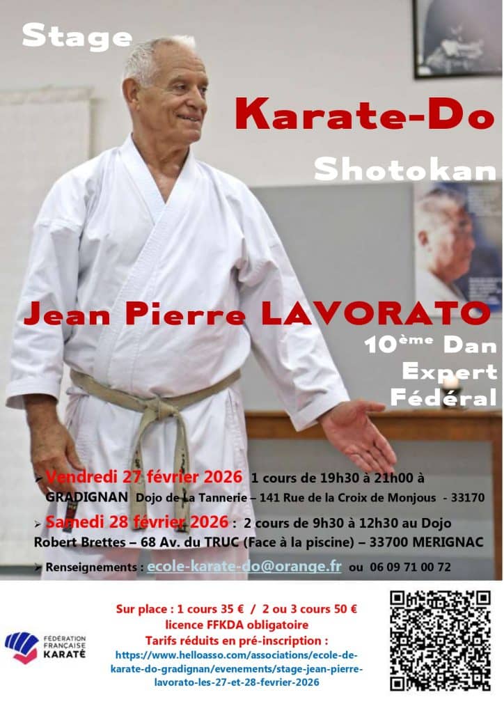- https://www.helloasso.com/associations/ecole-de-karate-do-gradignan/evenements/stage-jean-pierre-lavorato-les-27-et-28-fevrier-2026