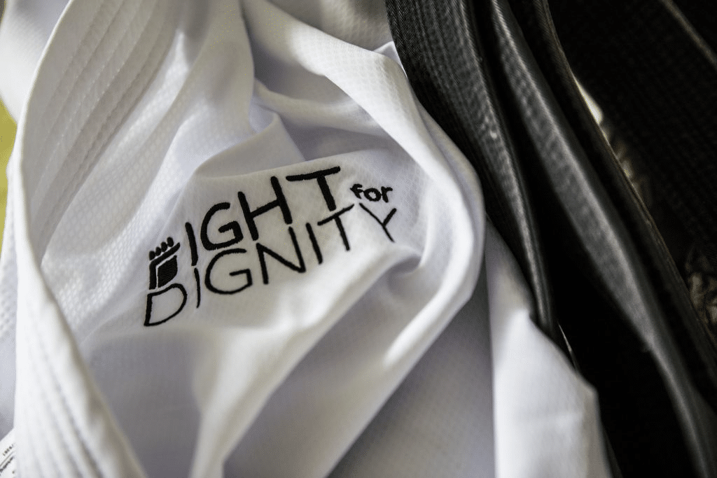 Fondée en 2017 par Laurence Fischer, triple championne du monde de karaté, l’association Fight for Dignity développe un modèle d’accompagnement fondé sur la pratique du karaté comme outil de reconstruction physique, psychologique et sociale.