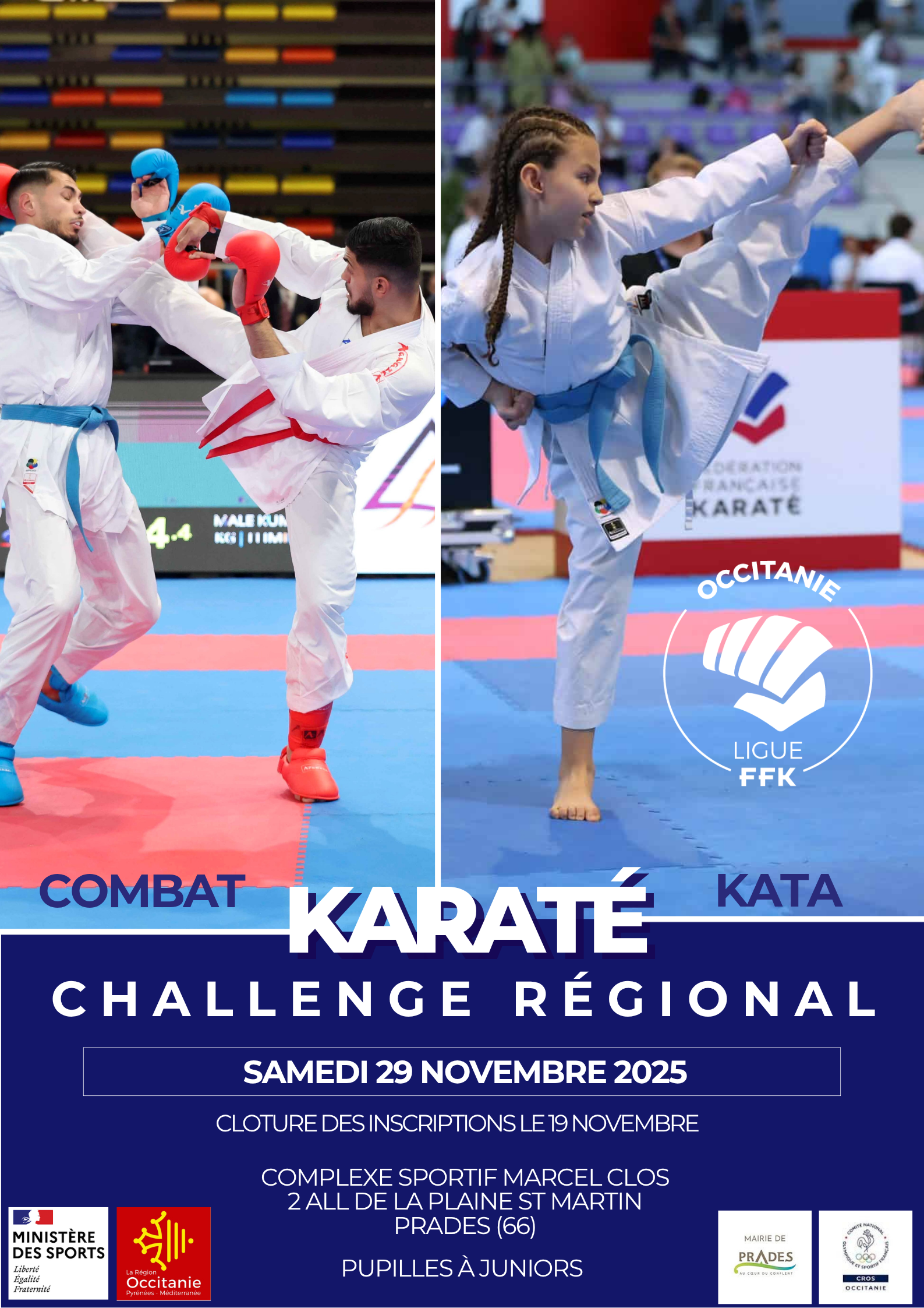 CHALLENGE REGIONAL KATA Date Sam. 29 Novembre 2025 Lieu Complexe sportif Marcel Clos2 ALLEES DE LA PLAINE SAINT MARTIN 66500 PRADES