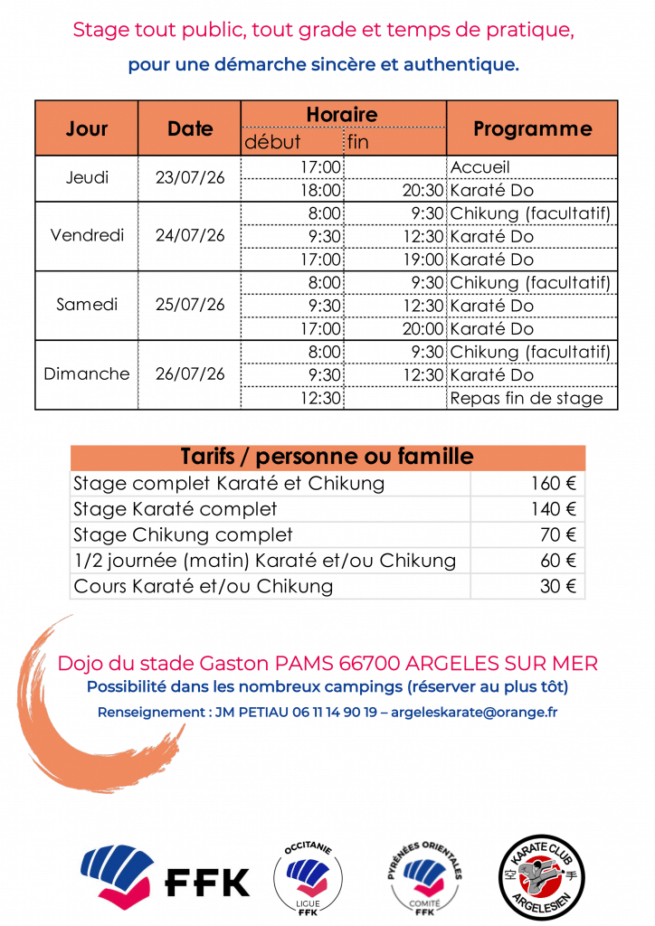 Stage Karaté Do et Chikung Argeles sur Mer