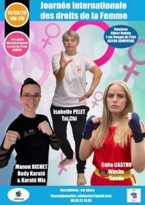 Journée internationale des droits de la Femme 24 février 2026 FFK Samedi 14 mars à Compiègne 14h00/17h00 venez vous initiez au Taichi, Wushu , Body Karaté et Karaté Mix