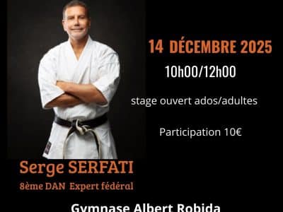 Dimanche 14 décembre, au gymnase Robida Rue Rouget de Lisle à Compiègne stage avec Serge SERFATI, 🕰️10h00/12h00 🥋Ouvert aux adolescents et adultes 💶 10€ l'inscription Soyez nombreux à venir participer