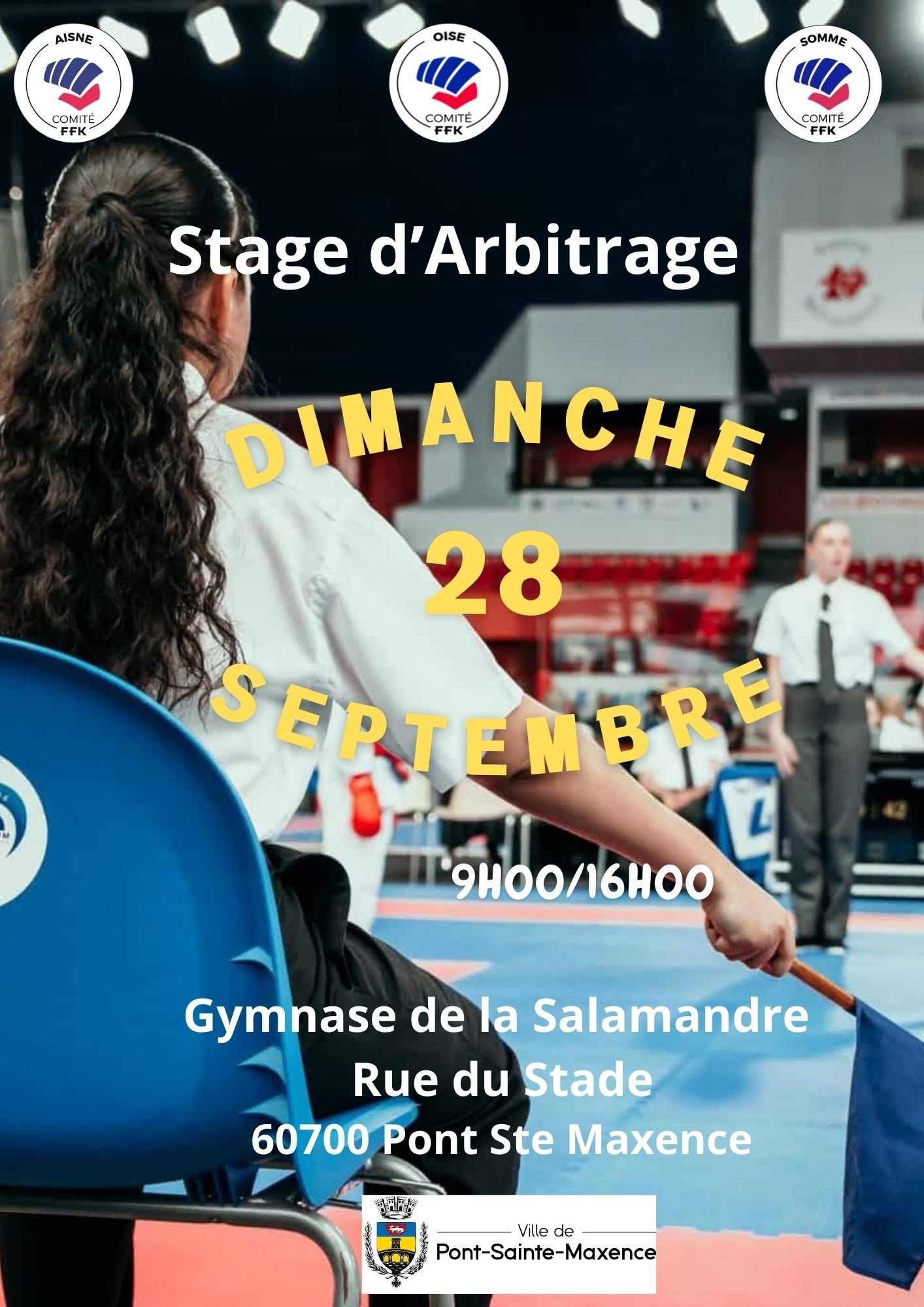 STAGE ARBITRAGE Date Dim. 28 Septembre 2025 de 09h à 16h Lieu PONT SAINTE MAXENCERUE DU STADE 60700 PONT-SAINTE-MAXENCE Présence des coaches, Parents, Professeurs et toutes personnes intéressées