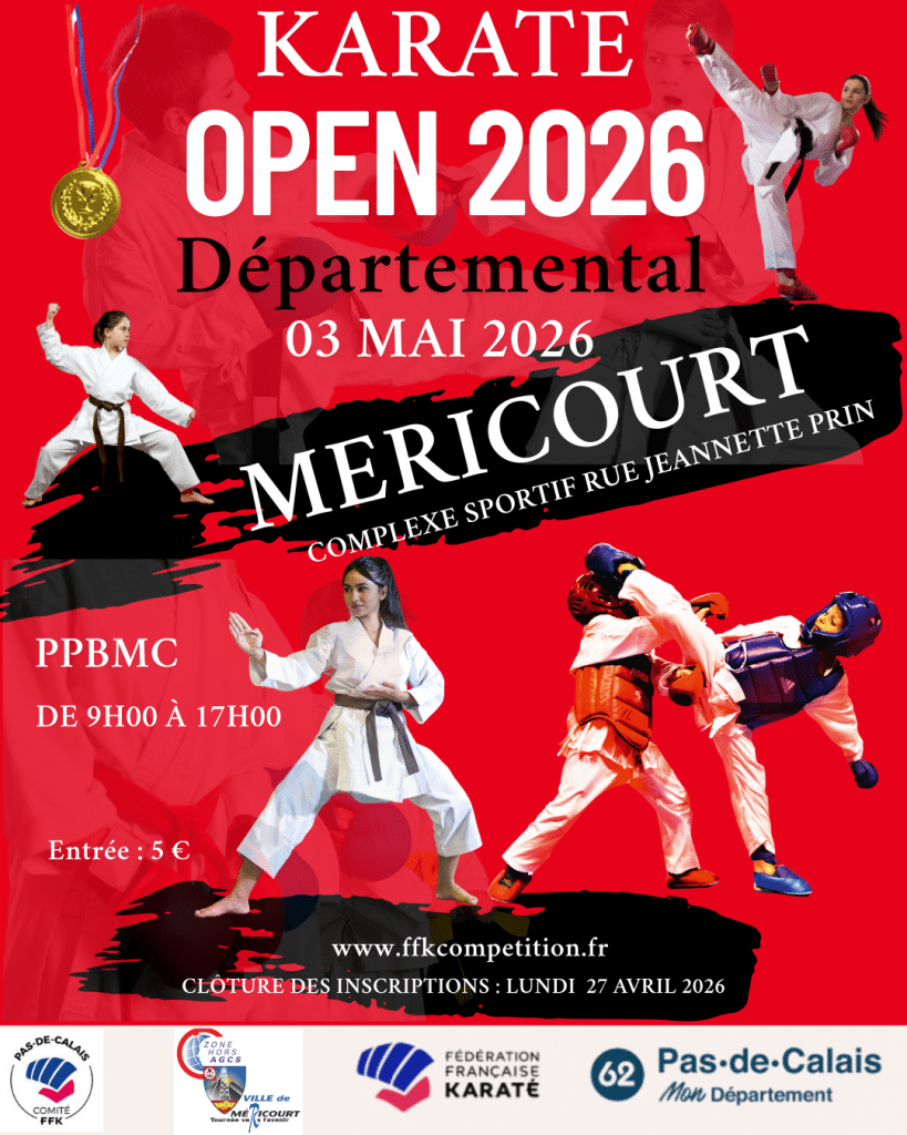 Open départemental Date Dim. 3 Mai 2026 de 09h à 17h Lieu Complexe Sportif MéricourtRUE JEANETTE PRIN 62680 MERICOURT Programme Compétition
