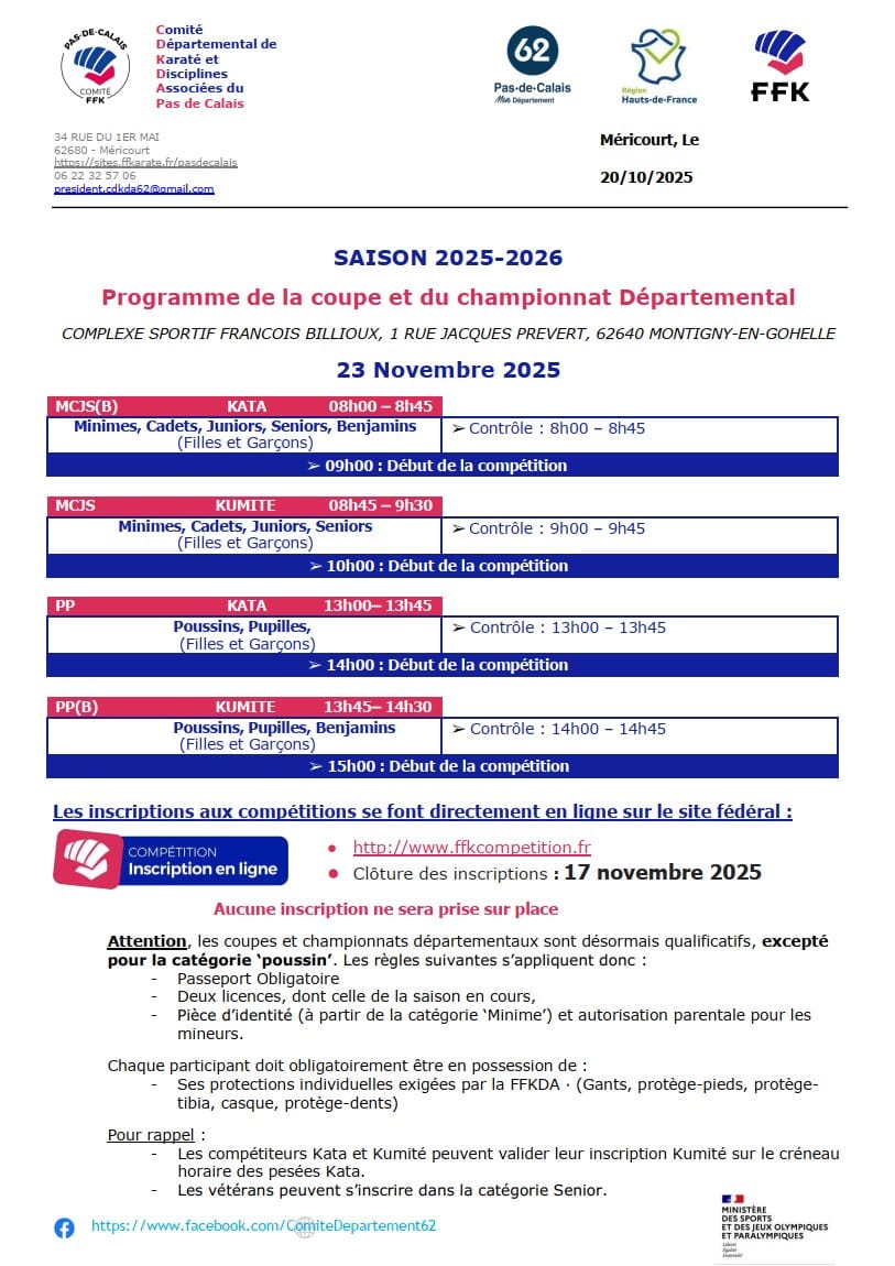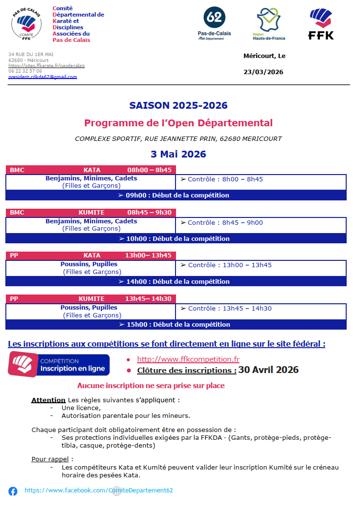 Open départemental Date Dim. 3 Mai 2026 de 09h à 17h Lieu Complexe Sportif MéricourtRUE JEANETTE PRIN 62680 MERICOURT