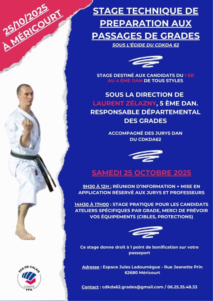 A vos kimonos ! Le premier stage de préparation au passage de grade de l'année se déroulera le samedi 25 octobre 2025 à Méricourt Venez échanger, travailler et aiguiser vos connaissances sur les différents UV du passage de grade avec les membres du jury départemental. Chers professeurs, pour préparer au mieux vos élèves aux échéances [...]