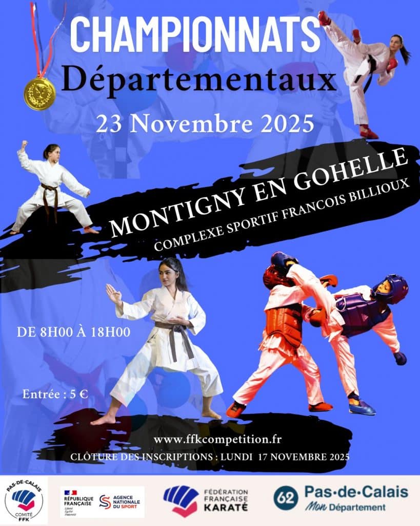 À vos agenda Premier regroupement des clubs du Pas-de-Calais Le dimanche 9 Novembre 2025 de 9H00 à 14H00 Dojo Hervé LIÉNARD 110, Avenue Winston Churchill 62000 ARRAS De nombreux changements cette saison pour les compétitions Compétiteurs! Venez vous entraîner et découvrir la nouvelle réglementation pour les futures compétitions. Chers professeurs, Coachs et arbitres ou futurs [...]