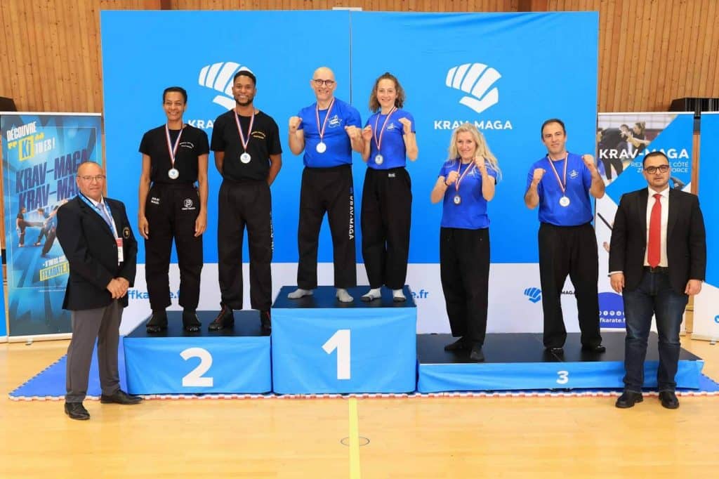 Elle est rejointe sur les marches du podium par Pascal CERISIER, qui s’empare du Bronze chez les Vétérans 2. Leur réussite prouve que l’enseignement du Krav Maga au Mans permet à chacun, quel que soit son âge ou sa catégorie, d’atteindre le haut niveau national.