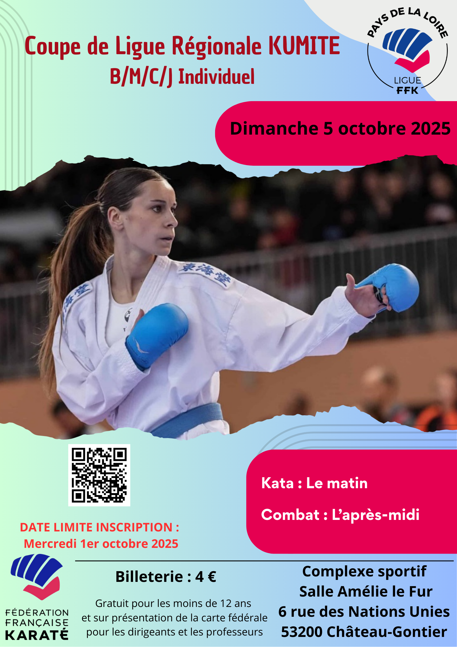 COUPE DE LIGUE BENJAMINS MINIMES CADET JUNIORS – COMBAT Date Dim. 5 Octobre 2025 Lieu CHATEAU-GONTIER6 RUE DES NATIONS UNIES 53200 CHATEAU-GONTIER-SUR-MAYENNE