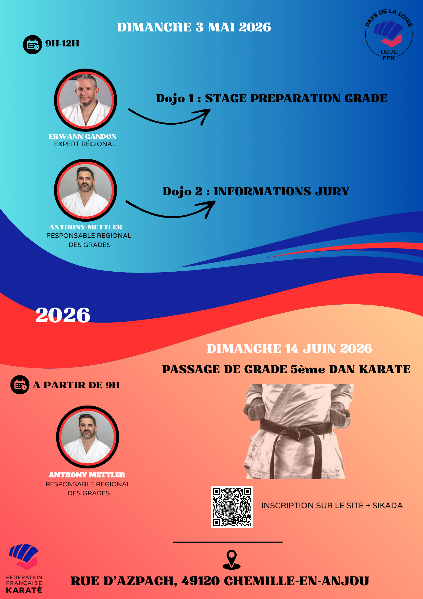 STAGE PREPARATION AUX GRADES + INFORMATION JURY Date Dim. 3 Mai 2026 Lieu CHEMILLE-EN-ANJOU (49)RUE D'ASPACH 49120 CHEMILLE-EN-ANJOU