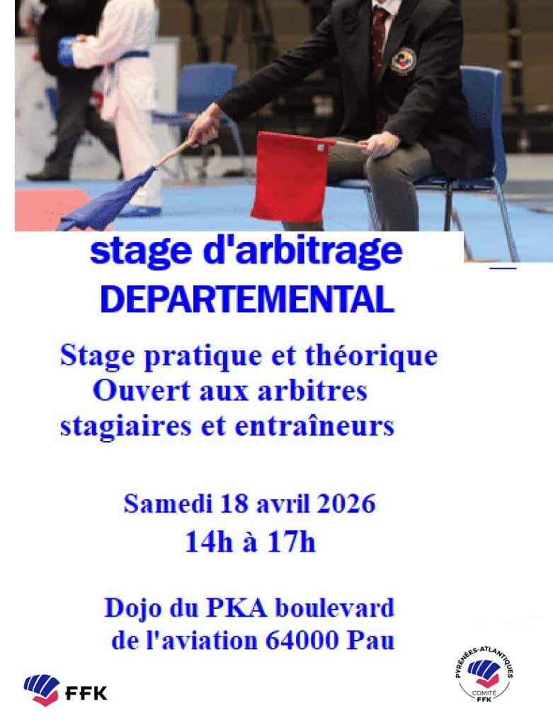 SAMEDI 18 AVRIL 2026 – STAGE ARBITRAGE – DOJO DU P.K.A. – PAU
