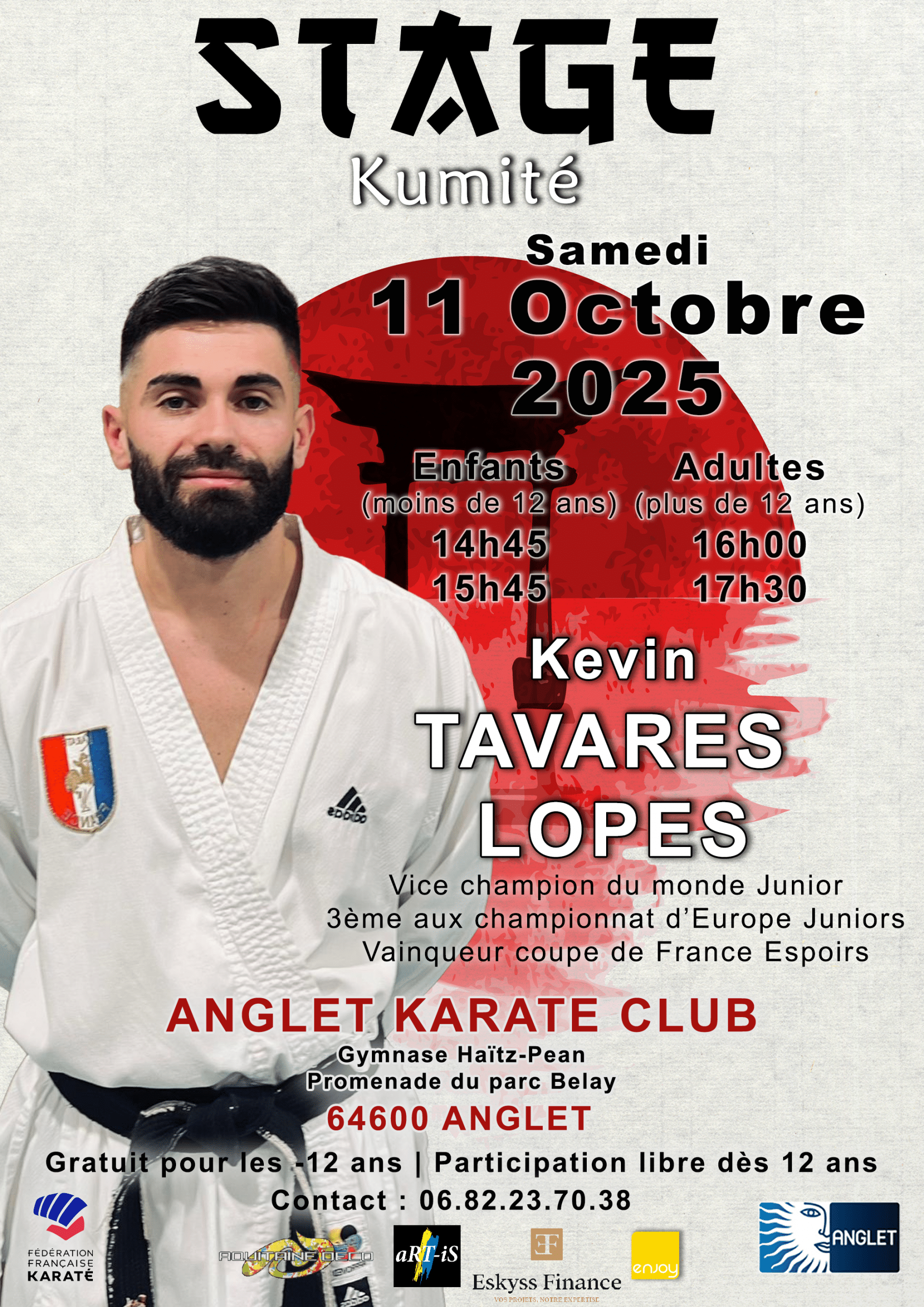 - ANGLET K.C. : Samedi 11 Octobre 2025 – Stage KUMITE animé par Kévin TAVARES LOPES – dojo Haïtz-Pean – 64600 ANGLET