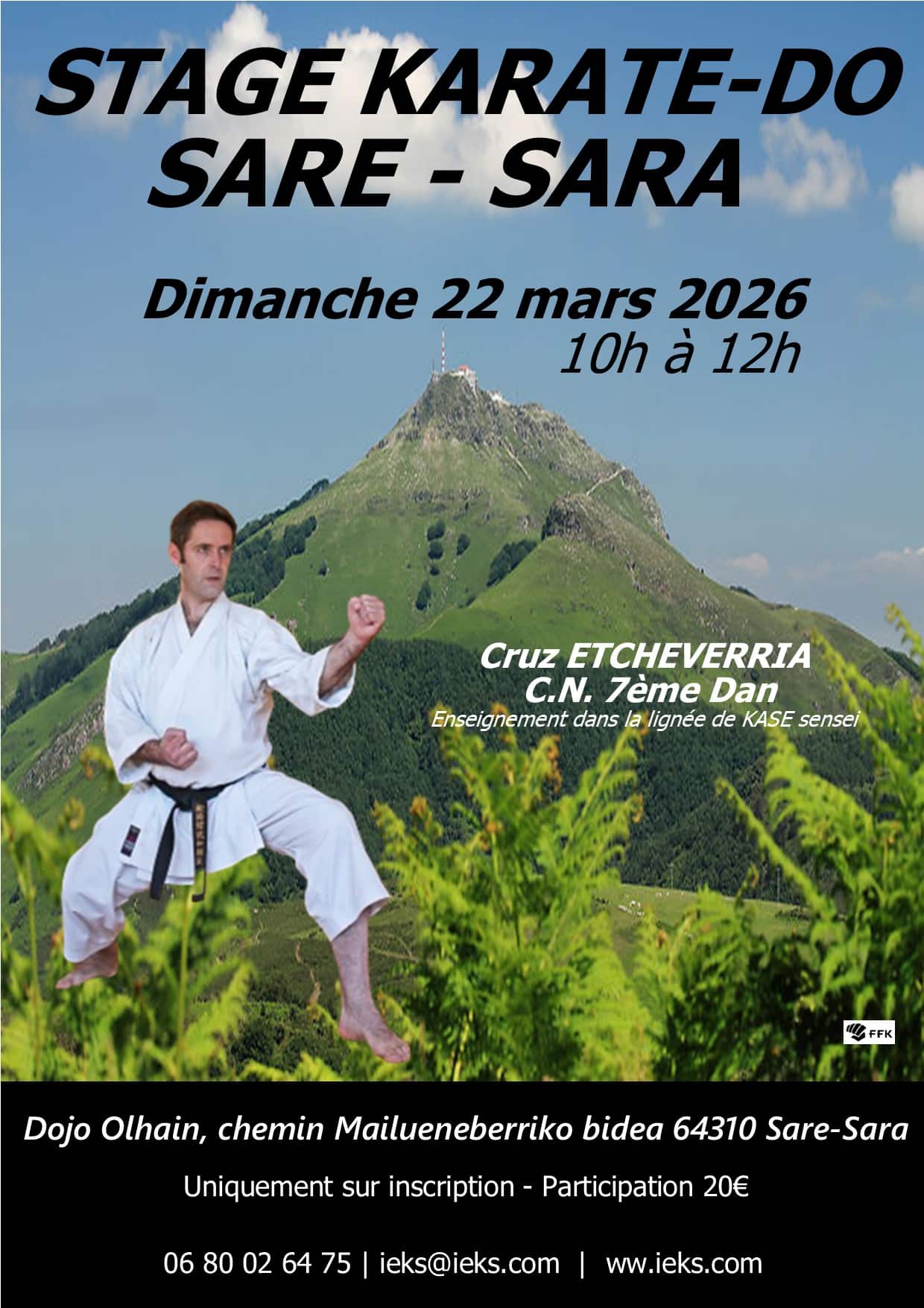 - IEKS : Samedi 11 et Dimanche 12 Avril 2026 – Stage KARATE DO animé par Christian LE ROMANCER (6° Dan) et Cruz ETCHEVERRIA (7° Dan) -Dojo Belcenia – 64700 HENDAYE