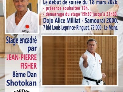 Dans le cadre des stages départementaux, nous avons l'honneur d'accueillir notre second EXPERT pour cette saison 2026 : M. JEAN-PIERRE FISCHER Jean-Pierre animera le stage d'expert le 18 Mars 2026 de 19h30 à 21h30 au Dojo Alice MILLAT, 7 Boulevard Louis LEPRINCE-RINGUET au Mans. Ce stage est accessible à tout licencié à partir de la [...]