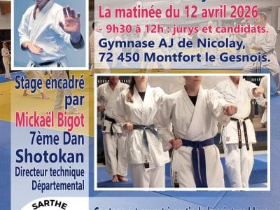 Dans le cadre de la préparation aux passages de grades, le Département organise un stage qui aura pour but d'apporter toutes les connaissances nécessaires pour préparer au mieux les grades du 7 juin 2026. Ce stage se déroulera le 12 avril 2026 au Gymnase AJ de NICOLAY, 72450 MONTFORT le GESNOIS et sera animé par [...]
