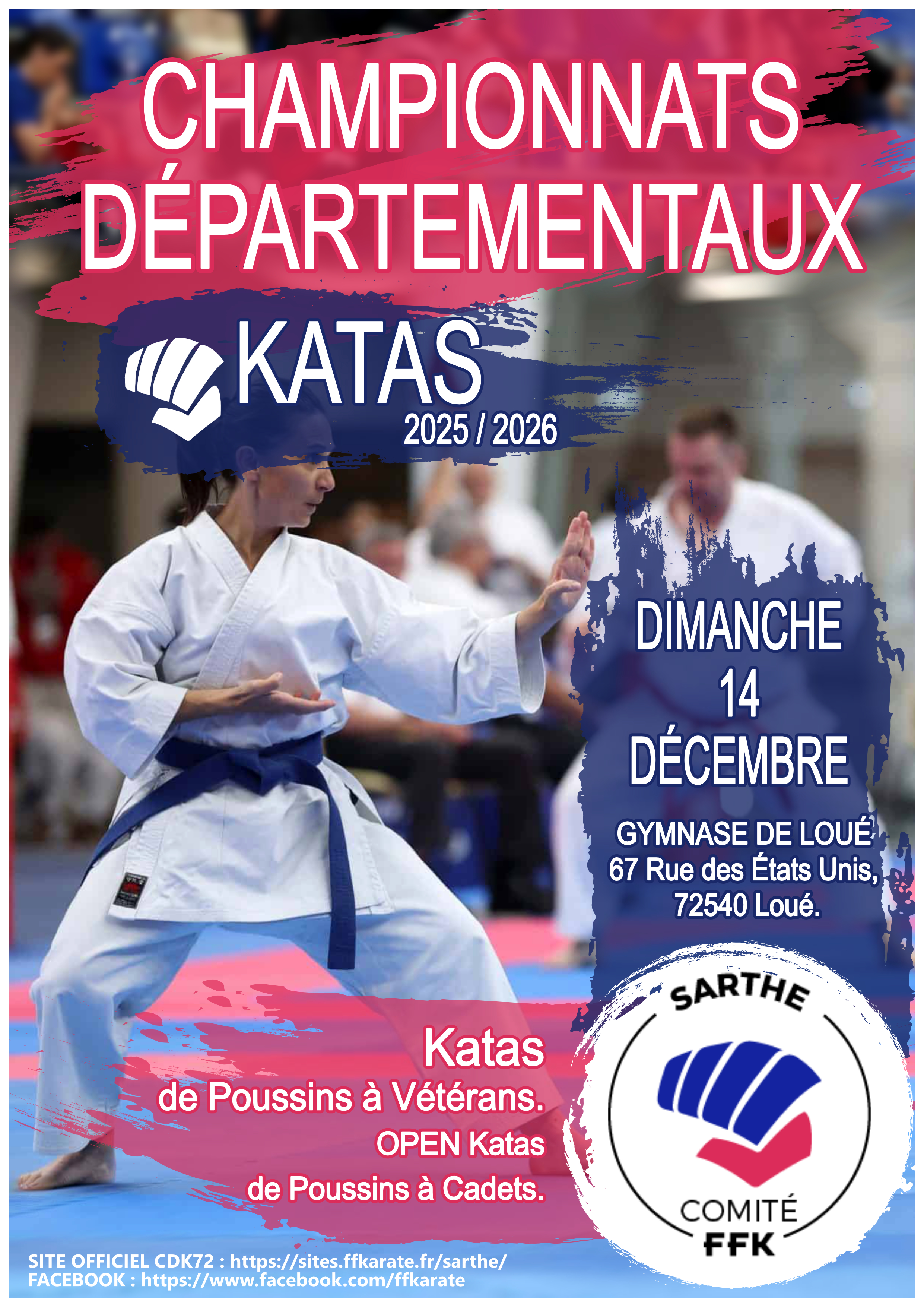 CHAMPIONNAT DEPARTEMENTAL DE LA SARTHE – KATA – FEM. Date Dim. 14 Décembre 2025 Lieu Centre Sportif de LOUERUE DES ETATS-UNIS 72540 LOUE