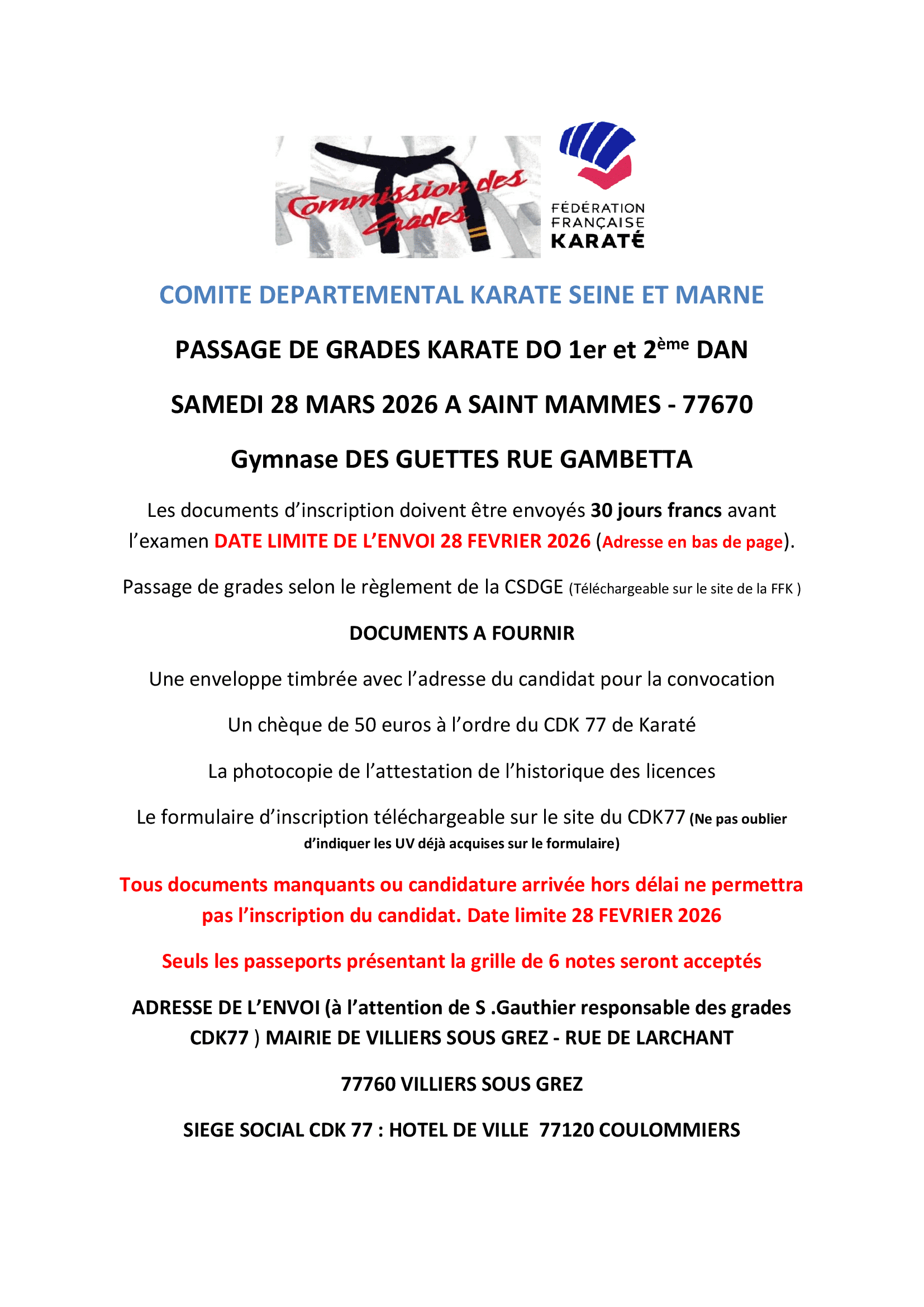 PASSAGE DE GRADES KARATE DO 1ER ET 2EME DAN