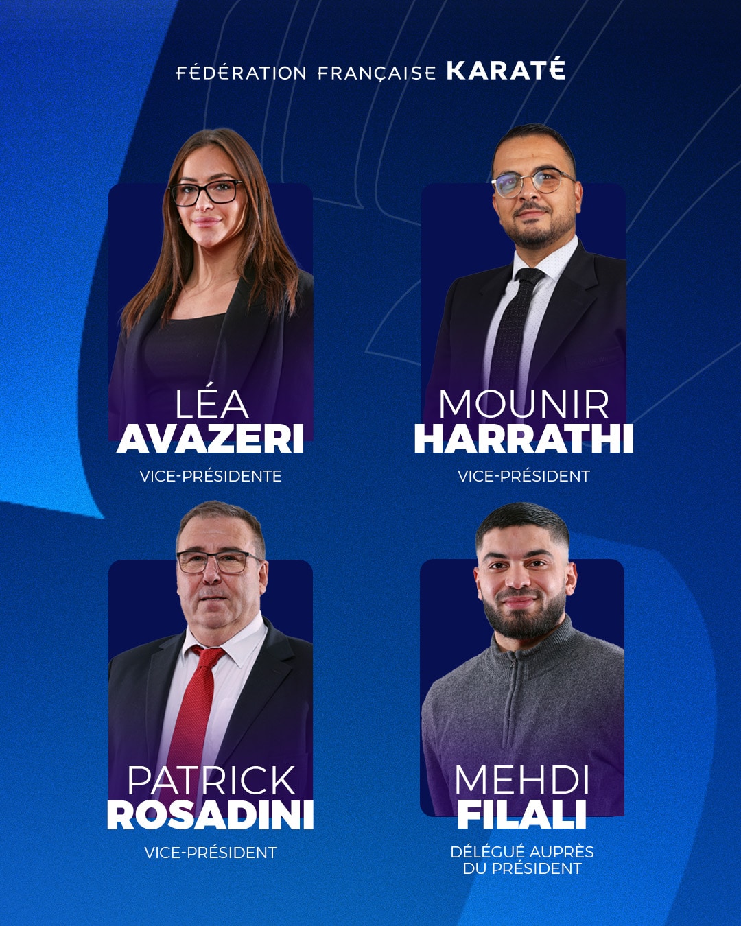 Bureau exécutif 17 décembre 2025 FFK À la suite du 𝗰𝗼𝗻𝘀𝗲𝗶𝗹 𝗱’𝗮𝗱𝗺𝗶𝗻𝗶𝘀𝘁𝗿𝗮𝘁𝗶𝗼𝗻 du vendredi 12 décembre dernier, retrouvez la composition complète du 𝗯𝘂𝗿𝗲𝗮𝘂 𝗲𝘅𝗲́𝗰𝘂𝘁𝗶𝗳 de la Fédération Française de Karaté et Disciplines Associées.