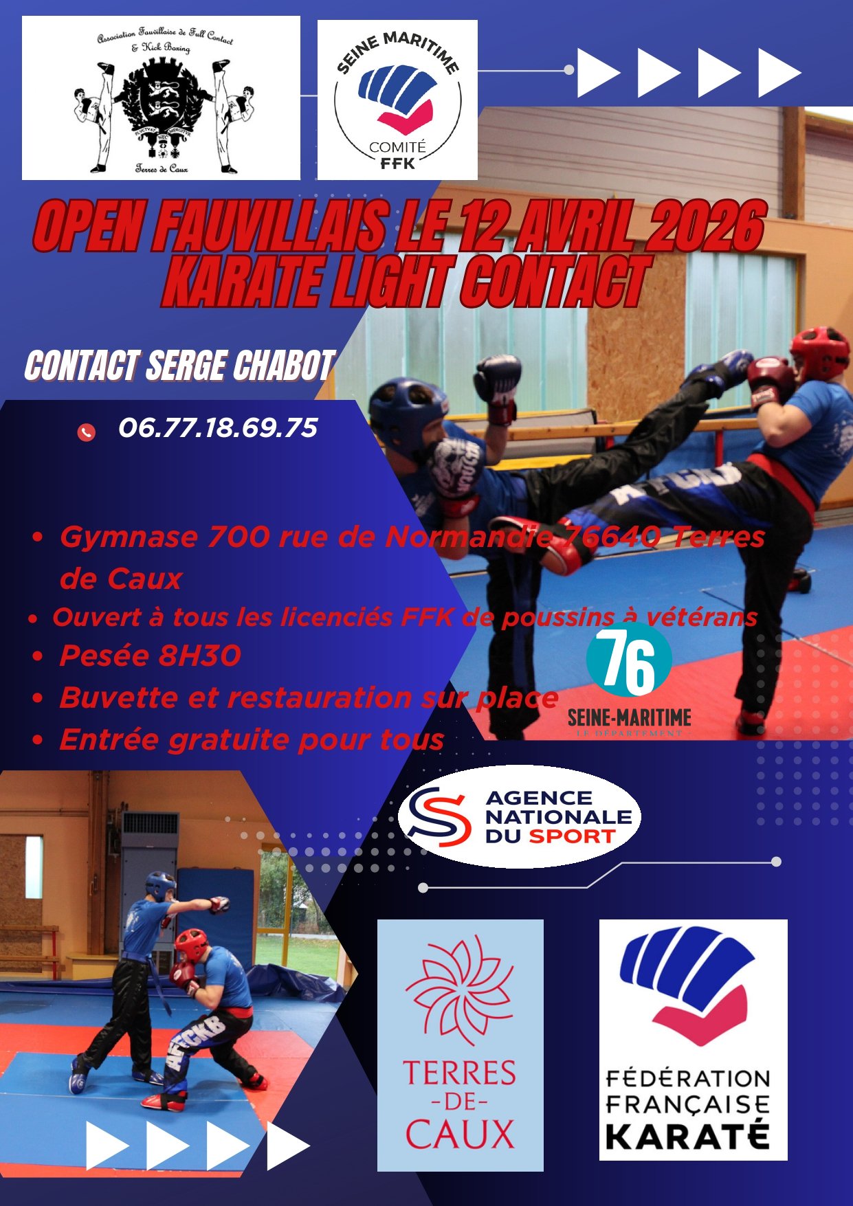 Open fauvillais karaté Light Contact Date Dim. 12 Avril 2026 Lieu TERRES DE CAUX700 RUE DE NORMANDIE 76640 TERRES-DE-CAUX