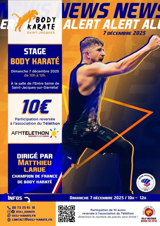Stages de Karaté do, à la rentrée les jeudi et dimanche 14 et 17 septembre sous la direction de Jean Pierre Lavorato.Le YOSHIN CLUB de Bois-Guillaume organise le dimanche 2 octobre 2022, de 9h30 à 12h, un stage de karaté Contact avec Jean Christophe BLANFUNE, 7ème dan, arbitre international en full-contact et light contact. Ouvert à tous et toutes, débutants ou confirmées en boxe pieds poings, licenciés de la FFK; La participation sera de 5 euros. D’autres stages avec des professeurs d’autres disciplines auront lieu tout au long de l’année. En juin, un stage de Nihon Tai Jitsu clôturera la saison. En attendant, nous vous attendons sur les tatamis.