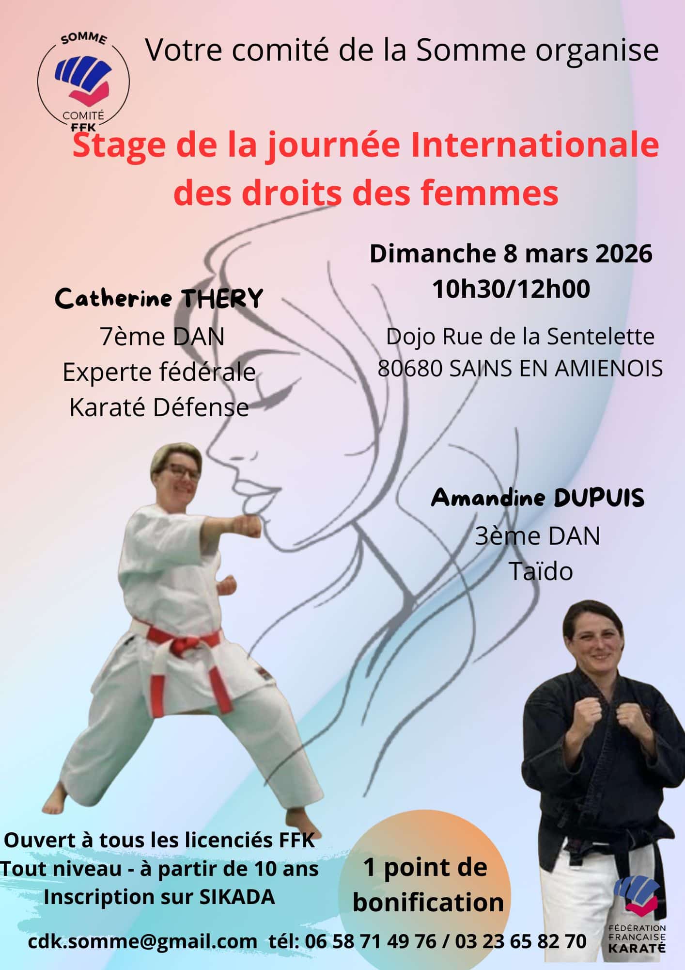 Stage de la journée Internationale des droits des Femmes 4 février 2026 FFK A votre agenda, dimanche 8 mars le comité organise le stage de la journée des droits de la Femme à SAINS EN AMIENOIS Vous pouvez dès à présent, vous inscrire sur SIKADA Le stage est gratuit