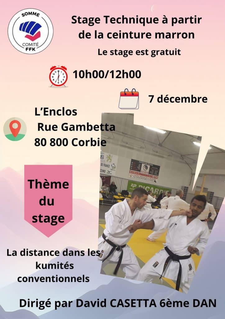Dimanche 7 décembre le club de Corbie accueille le stage technique dirigé par David CASETTA 6ème DAN Le stage est gratuit et ouvert à partir de la ceinture marron Inscription obligatoire sur SIKADA jusqu'au 5 décembre