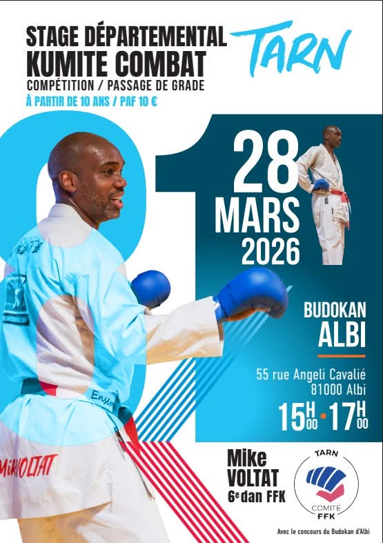 Stage avec Mike VOLTAT – 6ème Dan Date Sam. 28 Mars 2026 de 15h à 17h Lieu BUDOKAN - 55 rue Angely Cavalié - 81000 ALBI