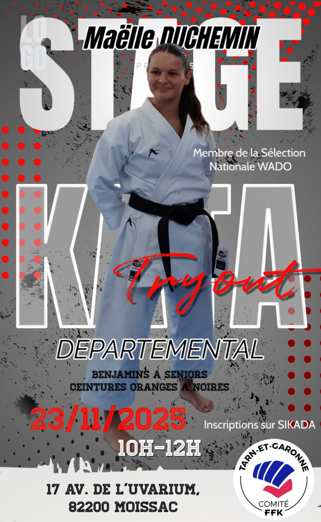 Le comité départemental organise un stage Kata, qui sera animé par Maëlle DUCHEMIN membre de la selection nationale Wado Ryu.