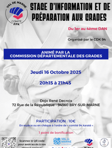 🚨 A compter du 15 septembre 2025, changement d'adresse pour le CDKDA94 🚨 📭 Adresse postale : Comité Départemental de Karaté et Disciplines Associées 4 avenue Danielle Casanova 94500 CHAMPIGNY-SUR-MARNE Nous restons joignable et à votre écoute : 📧 ffkarate94@gmail.com 📞 06-72-92-08-00